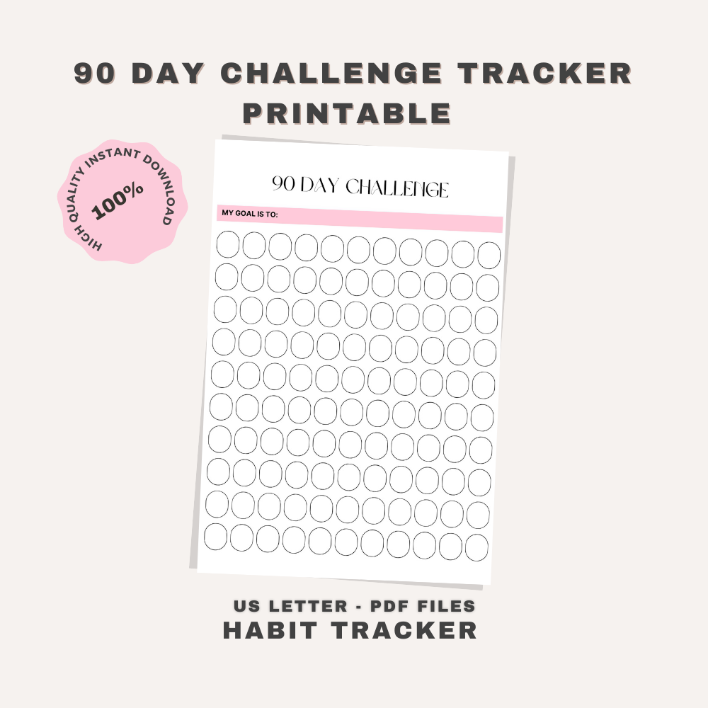 90 Day Challenge Tracker Printable | Habit Tracker | PDF Instsnt Download | GofiZo